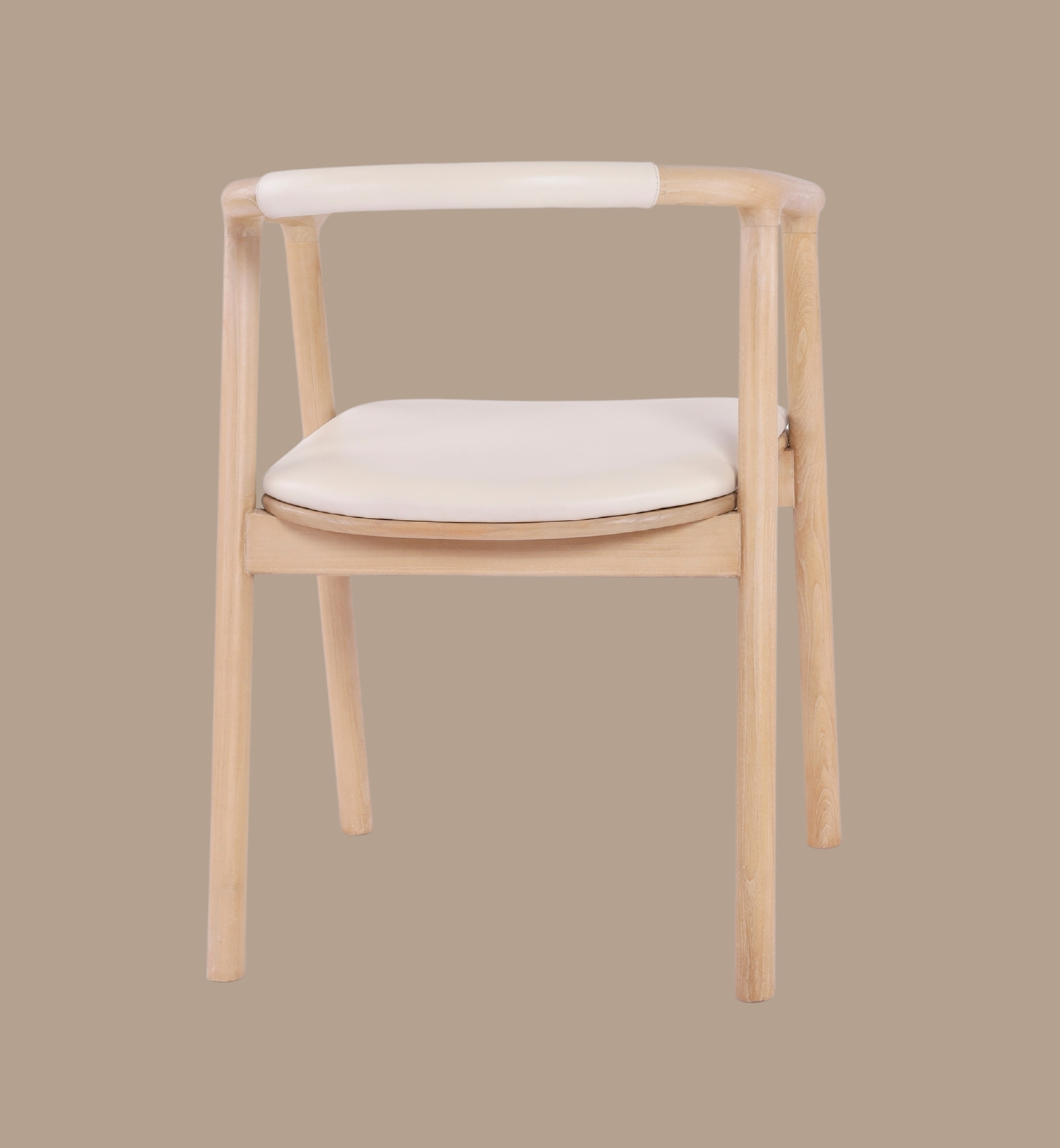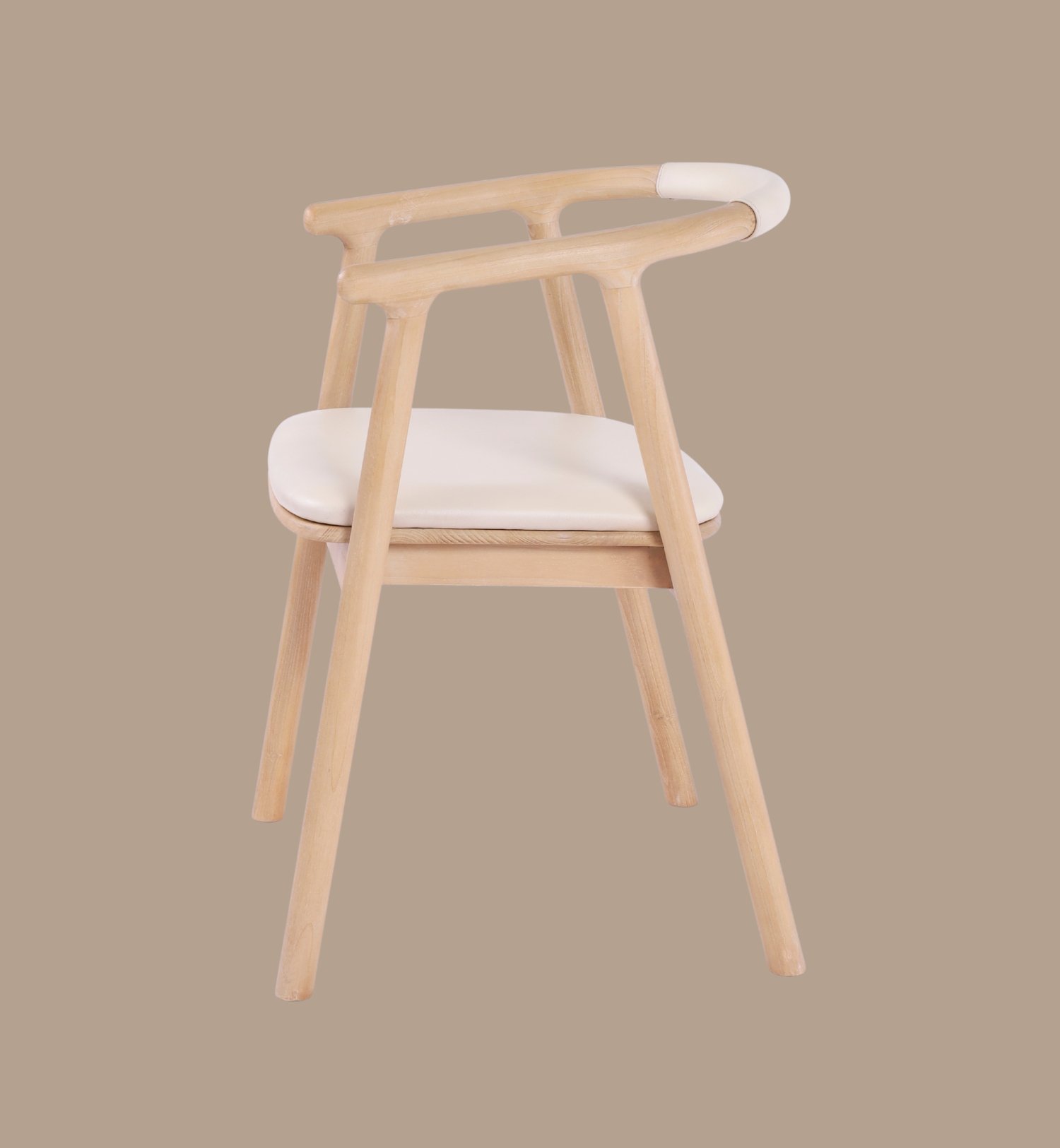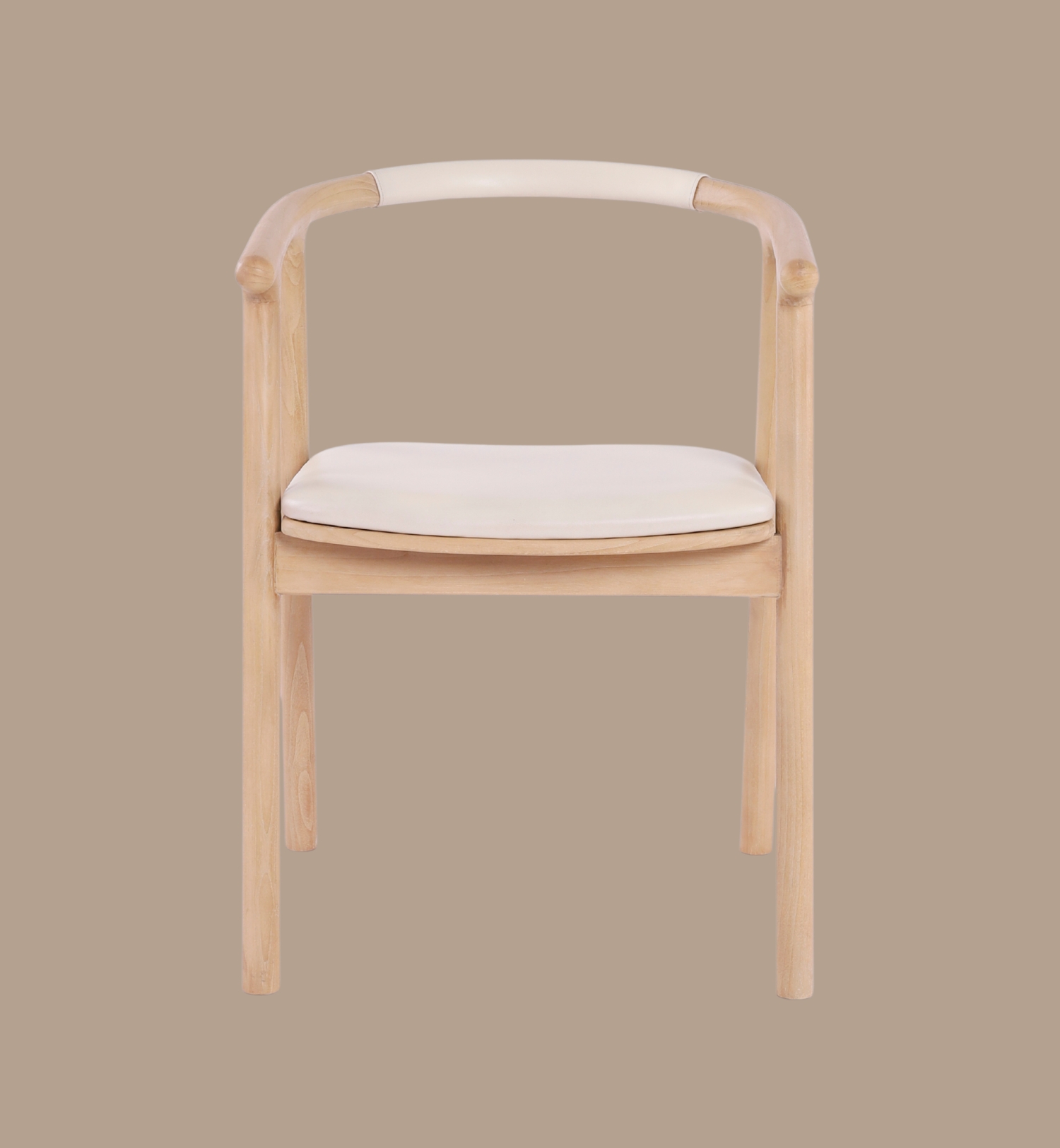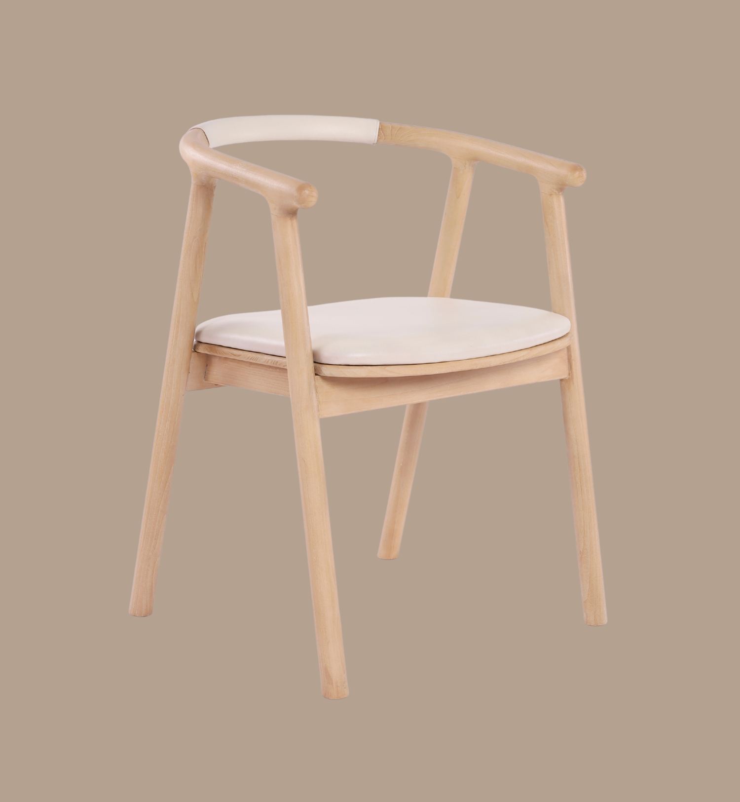 A contemporary dining armchair crafted from solid sungkay wood with a smooth ivory leather seat.